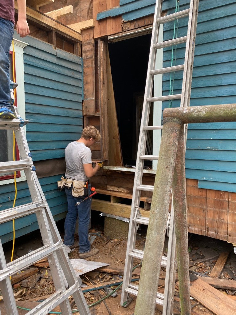 Our helpers also repaired some rotten framing on the kitchen, and laid subfloor in the pantry.